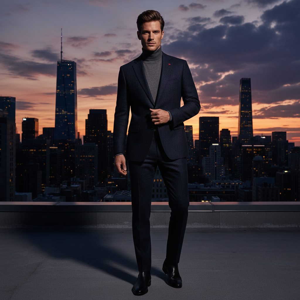• Le costume “signature” : celui qui affirme votre style, avec une couleur ou un motif plus marqué, que vous sortez pour les grandes occasions.
