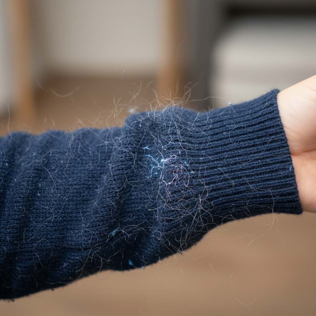 - Effet “aimant à poussière” : le tissu chargé attire les petites particules autour (poussière, cheveux, peluches). C’est pour ça que les vêtements noirs en synthétique ont l’air « sales » en fin de journée, même si vous n’avez rien renversé dessus.